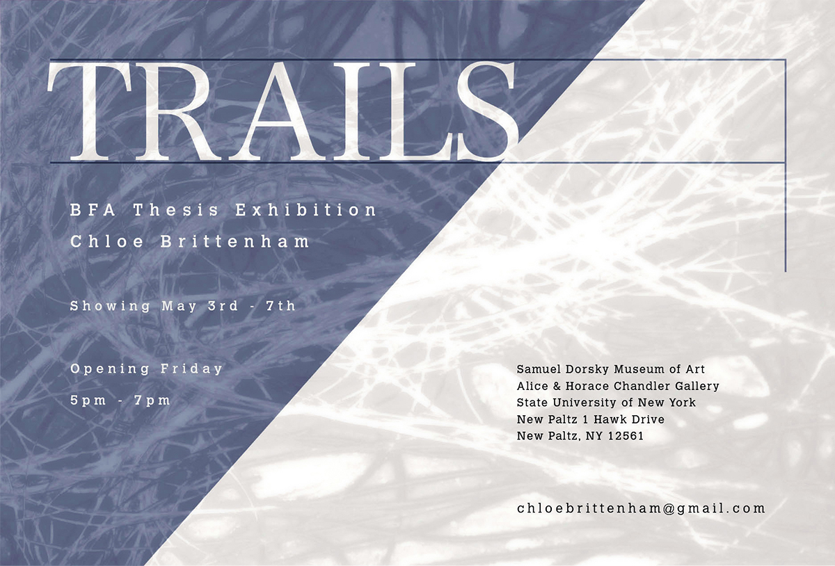 This promotional material was commitioned for her thesis show, entitled 'Trails'.