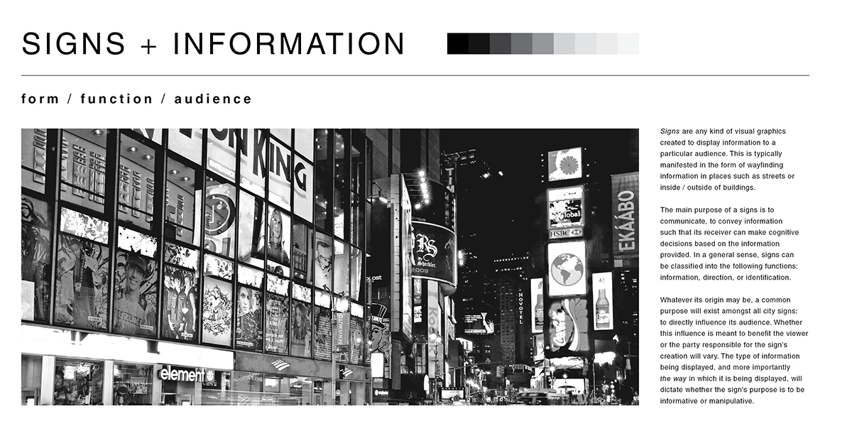 A study of urban signage that compares typography found in three of the world's major cities: New York, Tokyo, and Amsterdam.