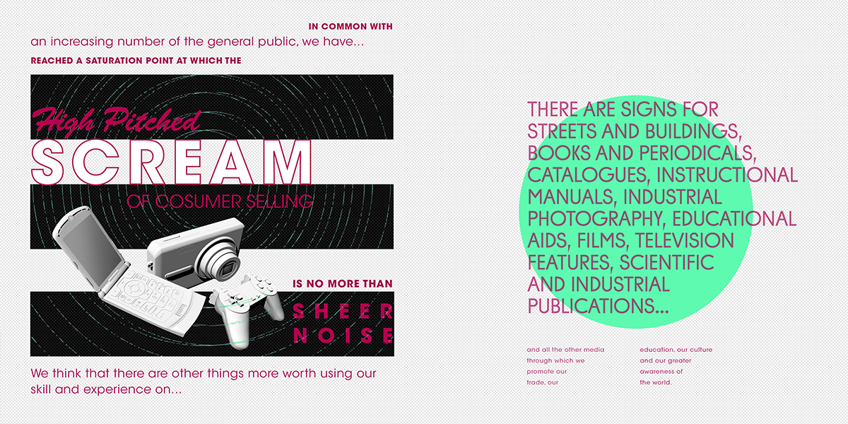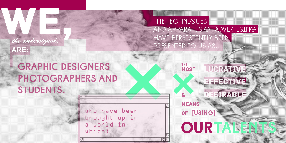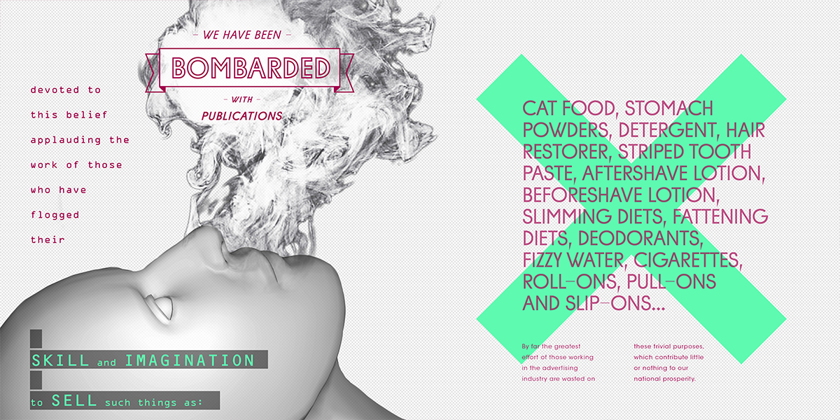 Excerpts from my rendition of a 1964 design manifesto entitled 'First Things First'. The publication was an anti-commercialist manuscript that condemned designers who had become uncritical of their own output as commercial artists.