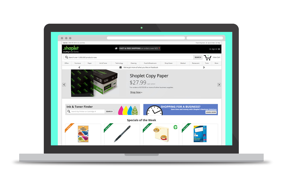 Shoplet is an online retailer of over 1,000,000 business products, servicing the continental United States, Canada and United Kingdom.